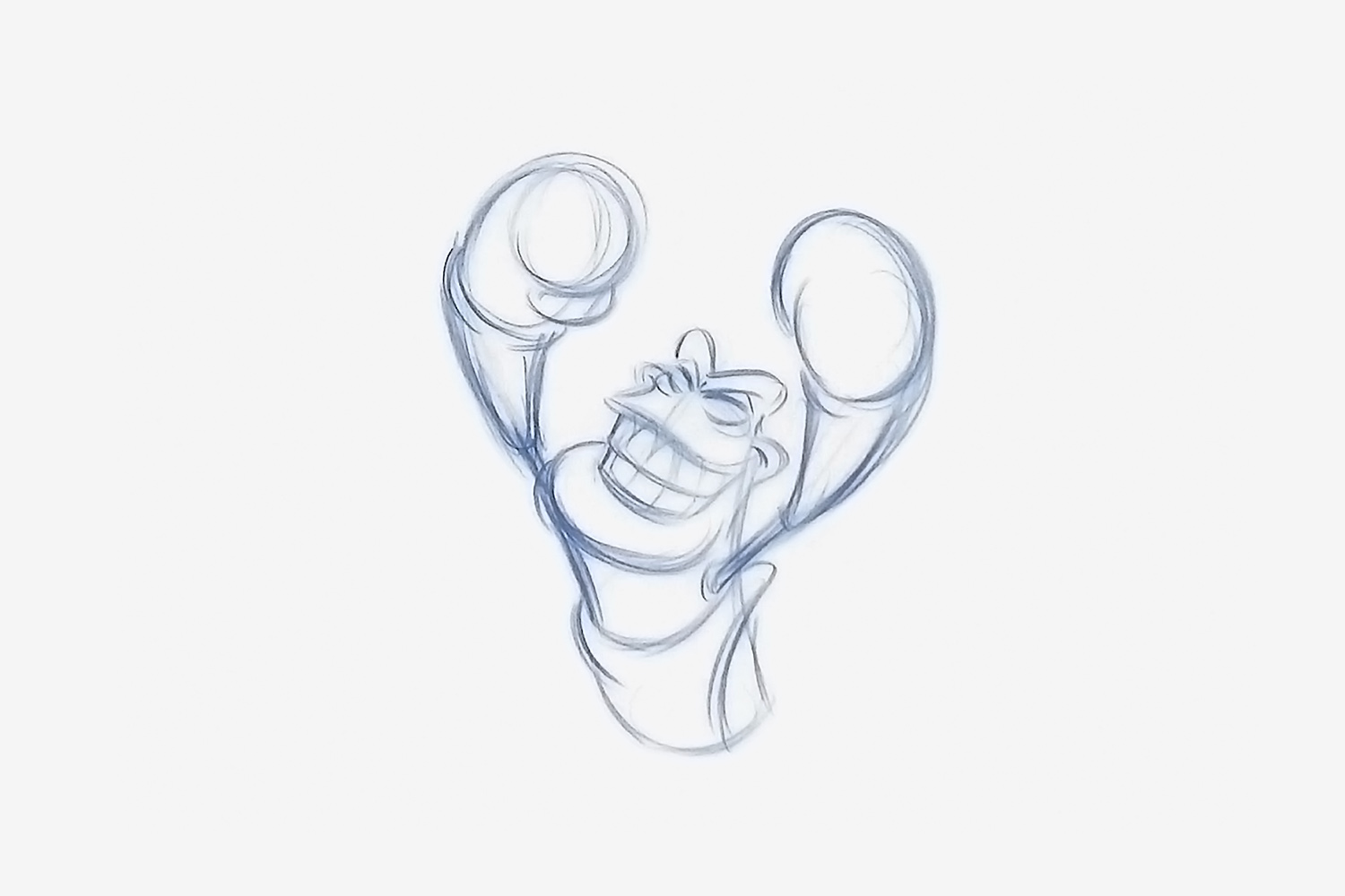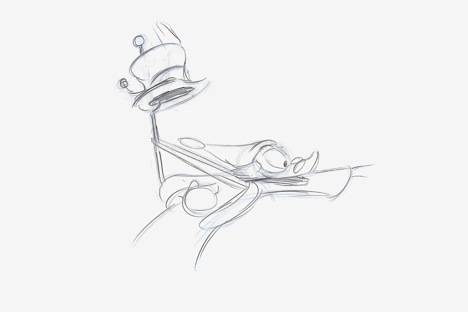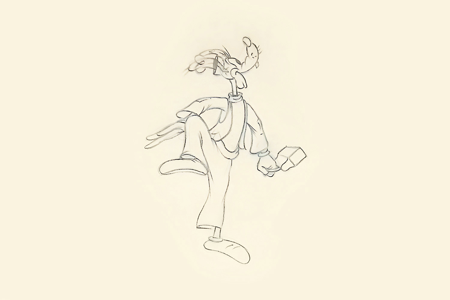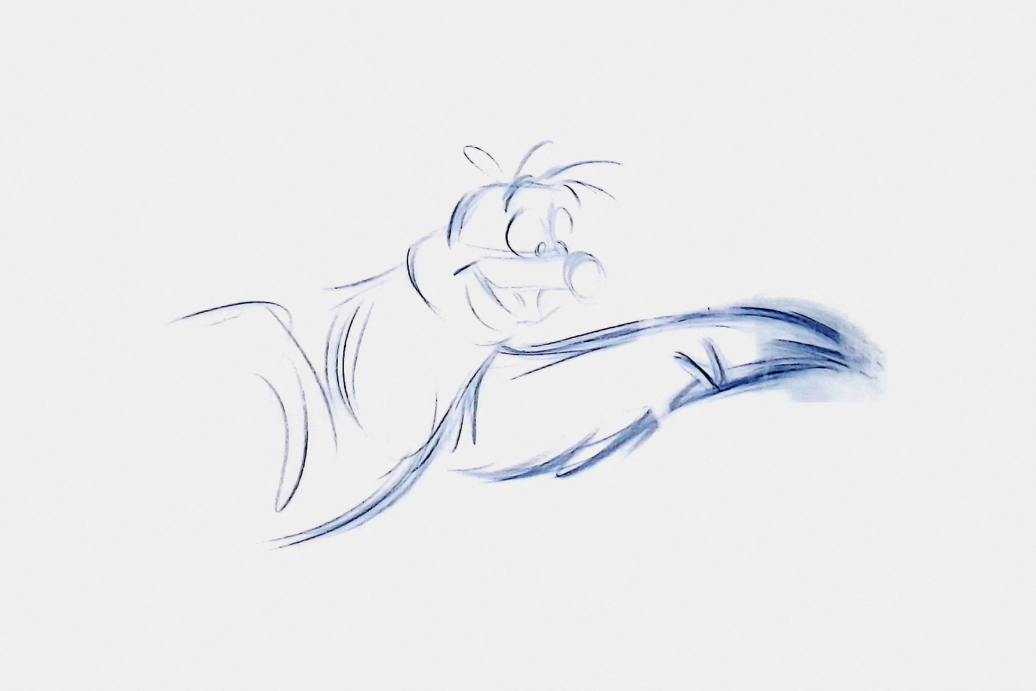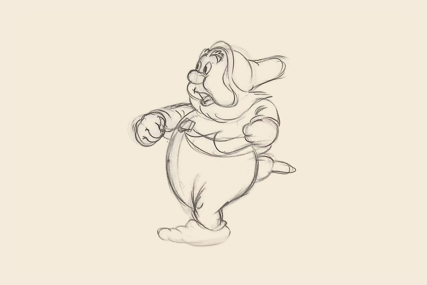 "Oh, they are hopeless. A disgrace to the forces of evil”, said Maleficent about her Goons. With butcher hand in hand, this Goon from Maleficent’s evil army can be seen approximately at the 16:40 mark of the iconic animated classic "Sleeping Beauty". The character is drawn on black and red colored pencil and the original artwork is noted 9D on the lower right side, presenting 2 reinforced pegholes.